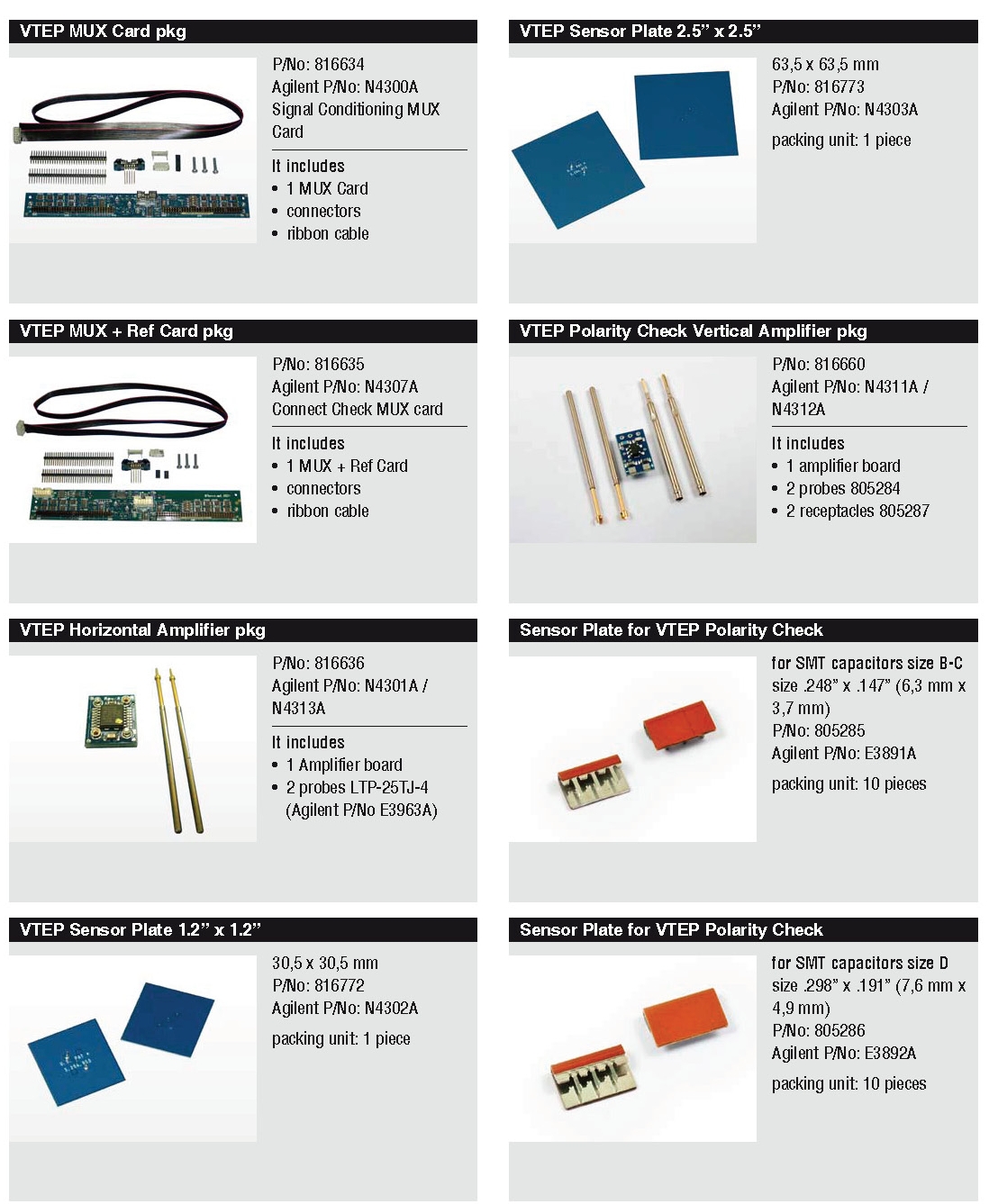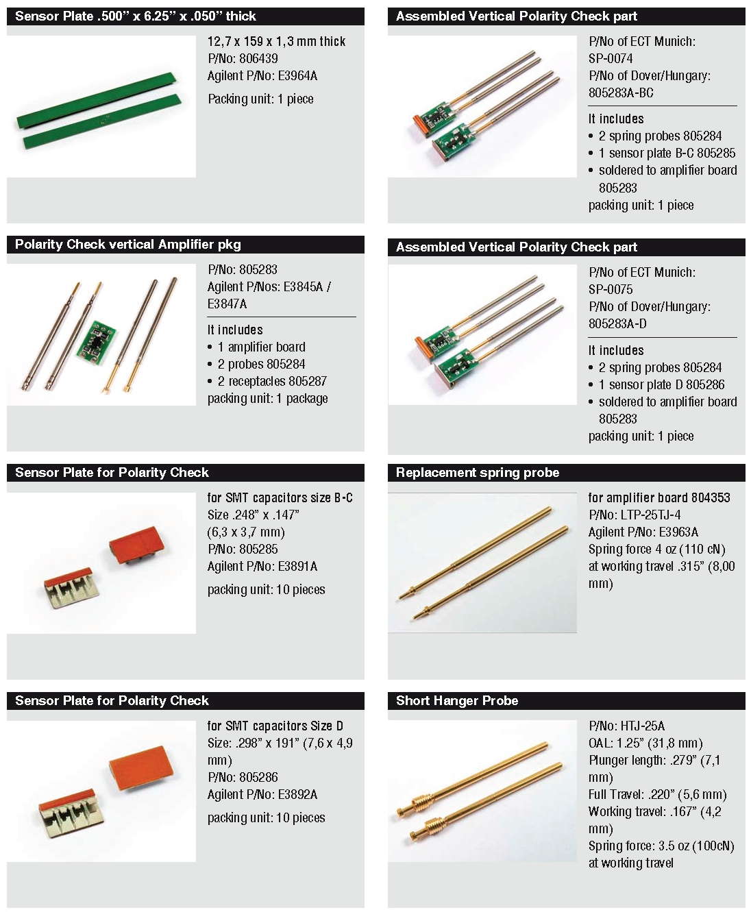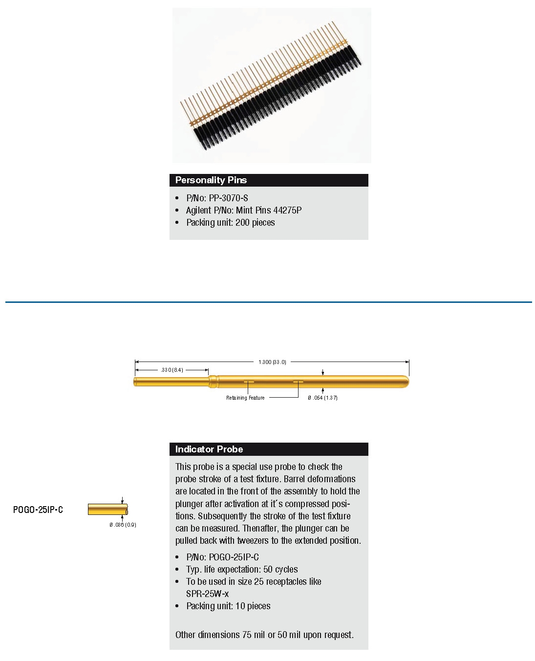 - Personality pins for the Agilent 307X testers and reference probes.