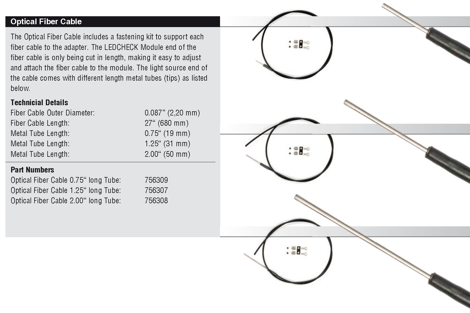 - Special Long Hanger Probes for Vtep & testjet probes and Fiber optic parts for Digital and Analog LEDCheck systems.